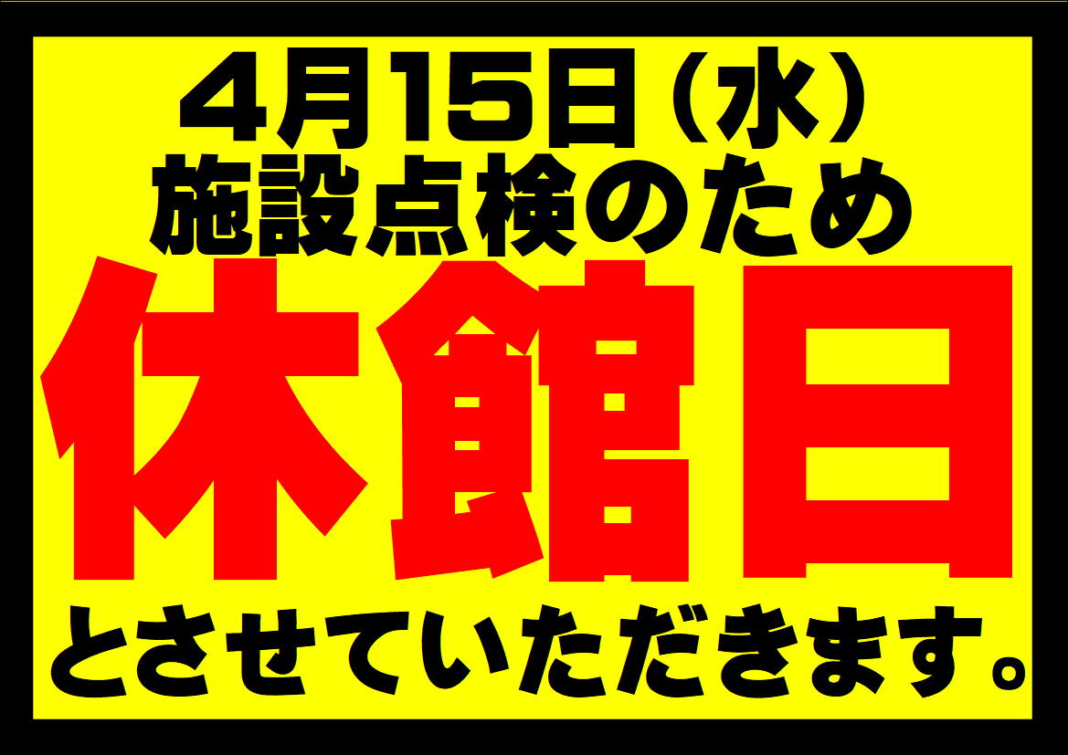 ※4月15日(水)施設点検のため 休館日とさせていただきます。